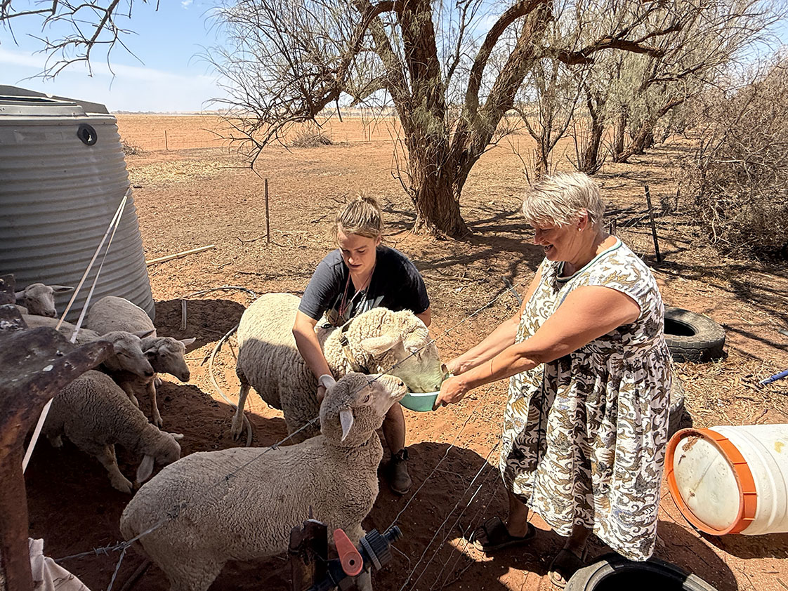 Saturday 31 January 2026 : Adelaide Central Rotarians Bill Marles and Michelle Tink visited a farm in Taldra – 20 minutes from Loxton in South Australia’s Riverland dry cropping region. They met Edwina and her mum Samantha.
